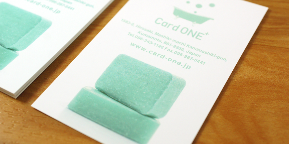 マットコート紙にフルカラー印刷をした名刺の表面全体に、香りのマイクロカプセルが入った透明の香りインクで印刷します。