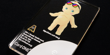厚さ4mmのアクリル板にLEDが内蔵され、7色に光り輝くLEDアクリル名刺。白1色、またはフルカラー+白印刷が選択可能です。