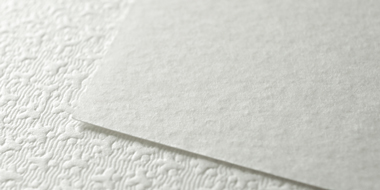 小さな花柄の凹凸が細かく入入った着物の布地の様な和の風合いなので、和風の絵柄によく合います。 白色度は高めで、裏面は上質系のサラサラした質感でエンボス模様はありません。